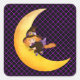 Small square sticker shown in a cute Halloween little witch print.
