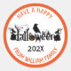 Elegant black and orange spooky Halloween typography creative concept design. Letters are made with images of Halloween symbols. Black raven, bats, spooky Halloween trees. Customisable Halloween template.