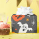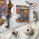 Modern Halloween symbols seamless pattern. Orange pumpkins ghosts, spiders and other Halloween symbols.