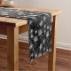Halloween table runner is shown in a spooky skulls print.