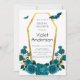 You will love these teal watercolor florals and a gold faux foil coffin casket textures and a goblet with spooky bats. Matching invitations are available.