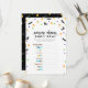 Cute Halloween theme baby shower game with black bats, a witches boot, ghosts, candy corn and polka dots.. Baby shower game is "nursery rhyme emoji" where you guess the name of the favourite nursery rhyme from the emojis. Back has a black background with the Halloween themed pattern. Fun for October baby showers!