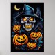 Ignite the Halloween spirit with this captivating poster! A bone-chilling skeleton, its eyes aglow with an otherworldly fire, readies itself for the haunting festivities. Carved pumpkins stand sentinel, casting an eerie glow that dances with the spectral presence. This poster captures the essence of Halloween's thrilling anticipation.