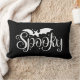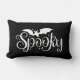 This throw pillow is shown in a black colour with a Halloween bat print design.