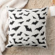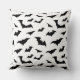 This throw pillow is shown in white with a Halloween bats print design.