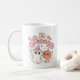 Halloween Tis the Season retro style mug featuring colourful text, a cute pumpkin, and ghost wearing a witch hat.