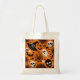 A orange colored background with scary ghosts, skulls, bats and pumpkings
