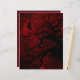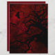 Dark red, atmospheric sky with creepy, crooked tree and crow silhouettes.