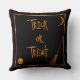 A minimalist orange and black goth design with the haunting symbols of Halloween, a crescent moon, a skull and a witch's broom. For that special Halloween trick or treat gift or Halloween Party. Get into the spooky spirit with our Halloween Trick or Treat throw pillow! This festive gift is perfect for Halloween parties.