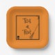 A minimalist orange and black goth design with the haunting symbols of Halloween, a crescent moon, a skull and a witch's broom. For that special Halloween trick or treat gift or Halloween Party. Get into the spooky spirit with our Halloween Trick or Treat paper plate! This festive gift set is perfect for Halloween parties.