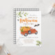 Halloween template with a red truck, pumpkins, sunflowers, spider, cute bat, greenery, and grey chequered back. To access advanced editing tools, please go to “Personalise”, scroll down and press the "click to customise further" link.