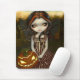 A moody Halloween painting - I've painted this winged beauty at twilight - there is a smoky dusk in the air as the unseen sun is setting. The bare trees give a taste of chill in the air. There's a big lovely Jack O'lantern too, grinning mischievously in the lap of her elaborate striped gown.. My own original acrylic painting.