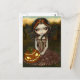 A moody Halloween painting - I've painted this winged beauty at twilight - there is a smoky dusk in the air as the unseen sun is setting. The bare trees give a taste of chill in the air. There's a big lovely Jack O'lantern too, grinning mischievously in the lap of her elaborate striped gown.. My own original acrylic painting.
