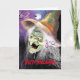 The ugly old face of a wicked witch is the feature of this Halloween card.