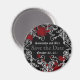 Personalised Gothic style wedding Save the Date magnet for your Halloween or vampire theme wedding. The magnet is black with a light to dark grey damask pattern on it and blood splatters that you can remove if desired. This makes for a fun, little decorative accent on the fridge.