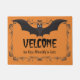 This design features a bat with expanded wings with the word "Velcome" in a dripping font, get a chuckle of all your visitors this Halloween. Easy to personalise with your family name.