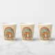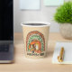 Capture the magic of spooky season with this Halloween Vibes paper cup featuring an orange rainbow, a pumpkin-shaped camper van, a friendly ghost, and a smiling jack-o'-lantern. Perfect for fall lovers, Halloween campers, and ghost season enthusiasts.