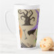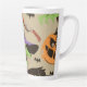 Halloween vintage pattern latte mug that includes knife, witch, and bats to add to your Halloween coffee mug and kitchenware collection.
