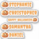 Add a dash of festive charm to your Halloween with our Halloween Vinyl Cutout Name Labels. This set includes four custom name labels and one "Happy Halloween" decal, all adorned with adorable watercolor illustrations of carved pumpkins. Presented on a single sheet, each label can be personalised with a unique name or text. Capture the spirit of the season with these jack-o-lantern inspired labels, perfect for adding a touch of personal magic to your decorations.