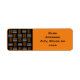 These return address labels have a mid-century modern design that looks like a weave with orange and white lines on a field of black.