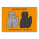 Two cartoon fluffy kittens with fangs, one black and one grey. The image has an orange coloured background and is accompanied by the words 'Wishing you both a fangtastic wedding anniversary'.