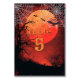 Halloween Wedding table number card with a spooky eerie background in bright orange moon, with dead, rotting creepy tree, spider webs and flying bats.