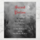 Custom Halloween party wine potion bottle favours with vintage blackletter in red, rustic hand in black and retro block letters in white against a sky with misty leafless trees, Gothic ravens and a cloudy full moon.