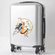 The stick looks amazing. Unfortunately, it would not stick on our suitcase as it was textured. When we found a non-textured (smooth) suitcase, the sticker stuck and looks great. The printing looked awesome.