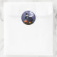 Stickers for Halloween with my artwork of a little witch standing on a pumpkin stirring her boiling cauldron.