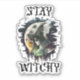 Witch in front of the full moon on Halloween night. Stay Witchy Quote.
