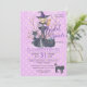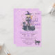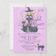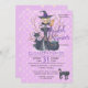 Funny elegant Halloween lilac purple polka dots typography bridal shower party invitation template featuring a witch in a grey dress wearing a hat with a broom, brushwood and black cats Fill in your information in the spots, You can choose to customise it further changing fonts and colours of lettering. ---- The invitation is suitable for a chic Halloween themed inspired party. --- If you need assistance to customise it, please contact me!
