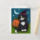 Halloween Witch Cat and Pumpkin Illustration Postcard