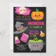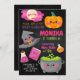 Cutest invitation to celebrate your Halloween birthday. Invite people to your party with this amazing design. Witch broomstick, cauldron, hat and candy are such a great combination for kids' birthdays!