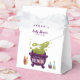 Cute halloween theme girl's baby shower favour box featuring an illustration of purple witch's cauldron fuming green smoke with candles and potions.