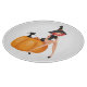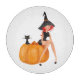 HALLOWEEN WITCH SITTING ON PUMPKIN WITH BLACK CAT.