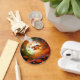 Keychain with my design of a witch flying past a spooky full moon on Halloween night.