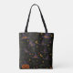 Step into the season of spells with this whimsical Halloween tote bag, where magic meets charm. A scatter of deep purple witch hats and sleek black cats with glowing eyes dance across a midnight-black canvas, surrounded by golden stars, crescent moons, and sparkling bursts of enchantment.