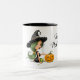 Twotone coffee mug shown with a halloween cute witch print. Mug has a black interior. Customise this item or buy as is.