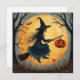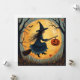 Halloween Witch on the Broom and Full Moon Holiday Card