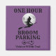 Spread a little Halloween humour with a flying witch over a full moon silhouette. One Hour Broom Parking ... Violators Will Be Toad. Great for the October season, or as a generic Halloween costume. This whimsical witch parking sign design is suitable for white and light-coloured backgrounds.