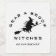 Show your fun spooky side these Modern Halloween Witch Party Black White Personalised Wine Labels. This modern design has the funny phrase, "grab a broom witches" and a black silhouette of a witch riding a broom with her black cat. Click personalise template option and enter name or custom text.
