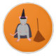 This awesome ceramic knob features a digital art image of a cute grey rat witch with pink ears, nose, feet and tail. The rat is wearing a black pointed hat with a gold buckle and purple stars all over it. The rats is also wearing a black cloak also covered in purple stars. Next to the rat is a brown broom made of twigs. This rat is dressed up ready for a Halloween party.