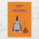 This awesome sheet of mini wine bottle labels features a digital art image of a cute grey rat witch with pink ears, nose, feet and tail. The rat is wearing a black pointed hat with a gold buckle and purple stars all over it. The rats is also wearing a black cloak also covered in purple stars. Next to the rat is a brown broom made of twigs. This rat is dressed up ready for a Halloween party. There is custom text so you can include a message.