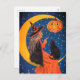 Celebrate Halloween with this vintage design, featuring a witch sitting on a crescent moon with her pumpkin and black cat.