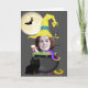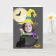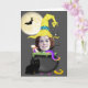 Halloween witch add your own photo template greeting card .. featuring funny witch hat, bat and moon and a cauldron full of scary things on a black background.. comes complete with white envelopes ..greeting cards by Ricaso