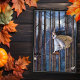 Send Halloween greetings with this vintage image of a witch with her black cat riding her broom on a windy fall moonlit evening.