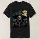 A spooky witch with glowing yellow eyes and a pointed hat emerges from the darkness on Halloween night. Pumpkins and bats add to the eerie atmosphere.