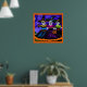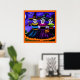 This colourful and festive painting of three witches with skull-like faces and colourful clothing is perfect for any Halloween party or decoration. The dark purple sky with a full moon and bats flying in the background adds to the spooky atmosphere. Get ready for a spook-tacular Halloween with this painting that is sure to add a touch of magic to your Halloween celebration.