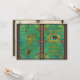 These unique Halloween party invitations have a witches' magic spellbook look in shades of green-blue, brown and gold. The front looks like the cover and the back looks like an open page. The front includes the words, "The Witches' Spell Book of Mystical Halloween Invitations." It also includes a creepy purple eyeball, a lock and key, a spider and plenty of ornate embellishments. The back includes a quill pen and some light sketches, such as a skull, the moon, a snake and more. It also has the words "To Chant Under a Full Moon." Use the text templates to add your party information. The design includes an original poem that you can choose to keep if you like - just change your family name and the address lines. These invites were made with lots of hours of loving care and will entertain your party guests before they even arrive. Have a happy Halloween!
