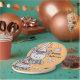 Have a bat-tastic bash this Halloween with this adorable bat dressed as a witch party paper plate. Features a light orange background and personalised greeting. Cute dangling spider on the top and stars under the wording.